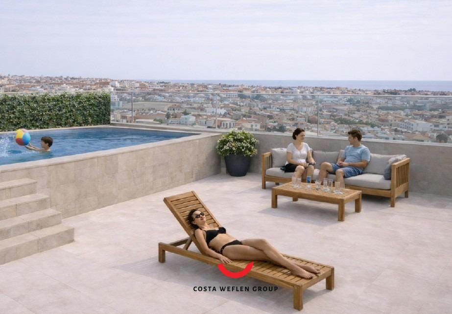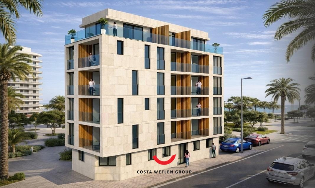 Drømmer du om å bo midt i byen, med stranden rett rundt hjørnet? Dette eksklusive nybygget ligger i sentrum av Torrevieja, bare 400 meter fra sjøen og omgitt av alt du trenger i hverdagen. Her har du butikker, restauranter, kafeer, supermarkeder og servicetilbud i umiddelbar nærhet – perfekt både som helårsbolig og feriebolig.