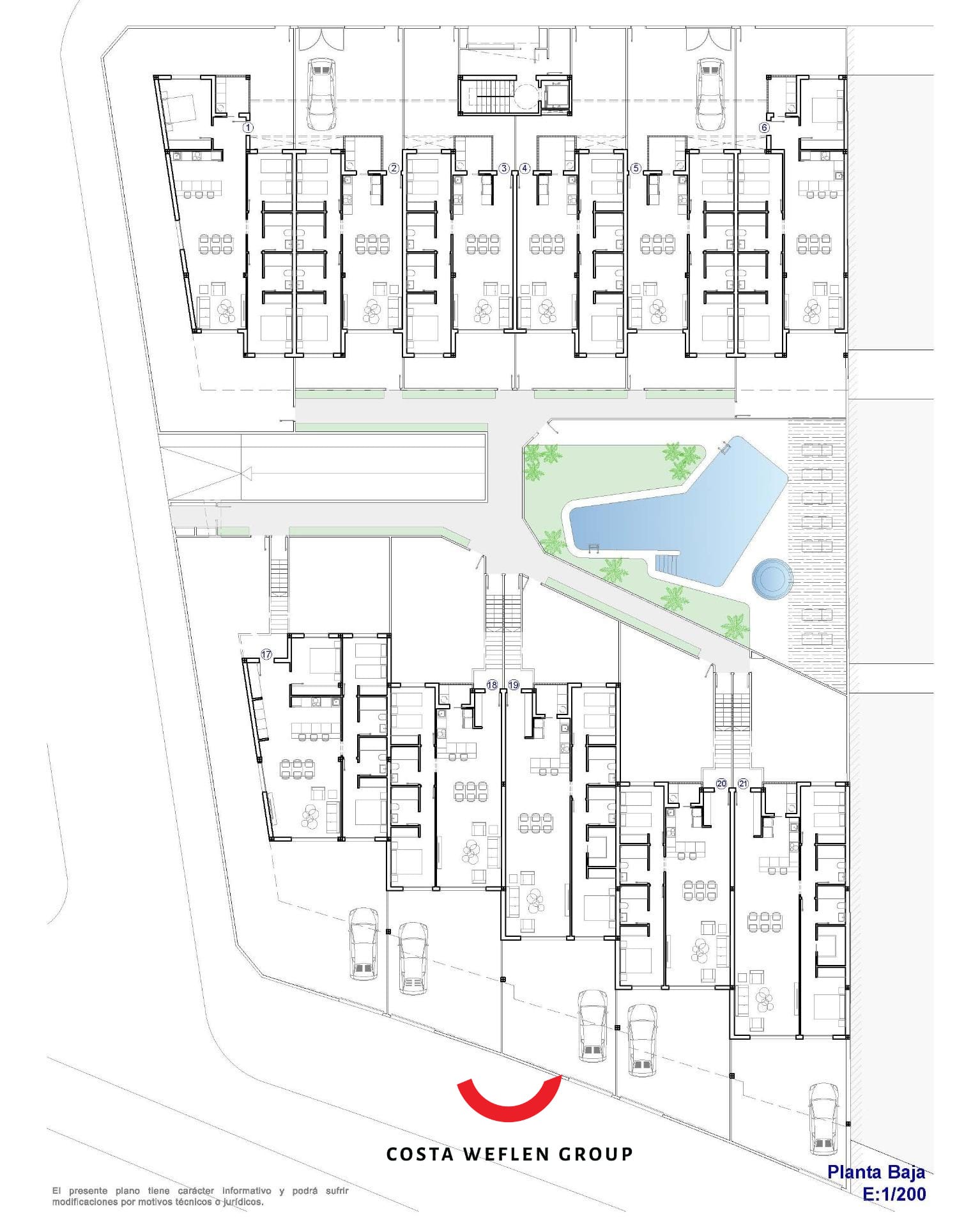 Alle boligene er designet med lyse, åpne planløsninger og moderne materialvalg. De leveres med fullt utstyrt kjøkken, komplette bad med gulvvarme og dusjvegger, aerotermisk system for varmtvann og forhåndsinstallasjon for kanalisert klimaanlegg.